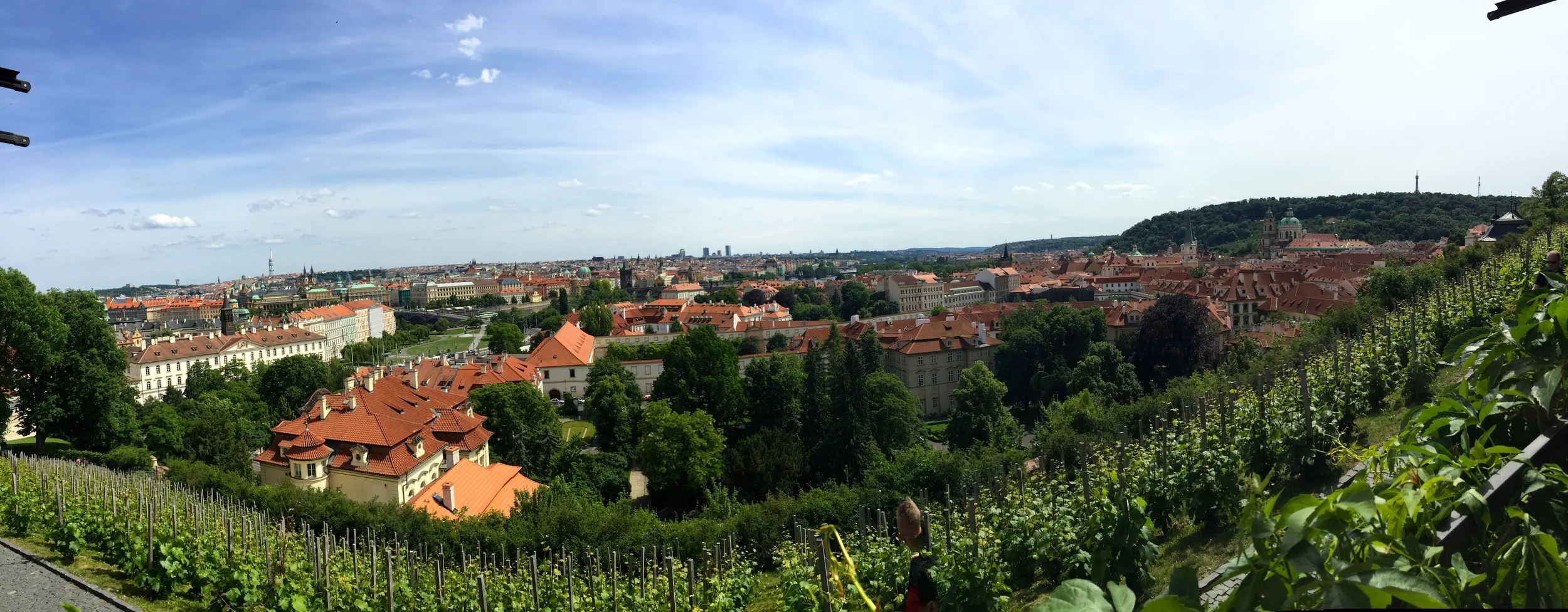 We started our last full day in Prague by walking back to Cafe Lounge for breakfast and experimented with different coffee brewing techniques. Neither of the techniques we tried produced strong enough coffee for our taste, but we enjoyed the experience and the breakfast. From there we walked to the John Lennon wall to take some photos of the quotes, graffiti, and lyrics currently covering the wall since we forgot to take a photo while on our running tour. We then set off in search of the Senate gardens where we were told there was an albino peacock. Allen was determined to find the peacock so we walked all around the garden until we found it. We were both disappointed to find out that the albino peacock was a female and therefore didn't have the large beautiful tail. We took some pictures anyway and looked for the nearest exit. As we were on our way out we heard some squawking and saw people taking pictures. Low and behold there was a male albino peacock hiding up in a tree squawking at all the people below taking pictures. It was hard to get a good photo of him up in the tree, but nonetheless he was pretty impressive. We left the garden and began the climb up to the Prague castle. On our way we stopped for some wine from the vineyard on the hill just below and enjoyed the fantastic view of the city. We decided to tour the St. Vitus Cathedral within the Prague Castle, but all the audio tours were sold out so we just wandered around appreciating the building with its impressive stained glass windows. We climbed to the top of the tower to get some good views of the surrounding area and then stopped in at a "WWII through the lenses of Czech Photographers" exhibit before leaving the castle. We then walked up to the Metronome (which is giant and actually functional) in Letna Park. It's supposed to have the best beer garden in town and best views of the city. We ordered two large beers and sat on the ledge in front of the Metronome and just took in the view. People were skate boarding behind us and there was a roller hockey game going on nearby, yet the whole experience was so peaceful and relaxing. We talked about how glad we were that we added Prague to our itinerary and decided that Prague was one of the most livable cities that we had been to so far. We loved the food, the people, the sights, the parks, it's a runner friendly city and there are happy and healthy dogs everywhere!