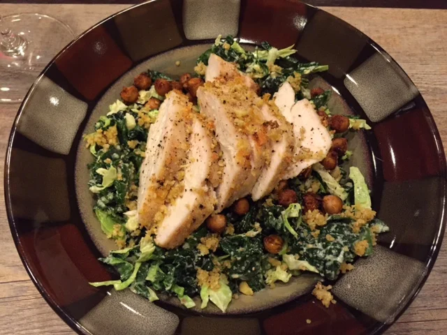 The recipe is vegan, but I added lemon pepper chicken to the salad:
