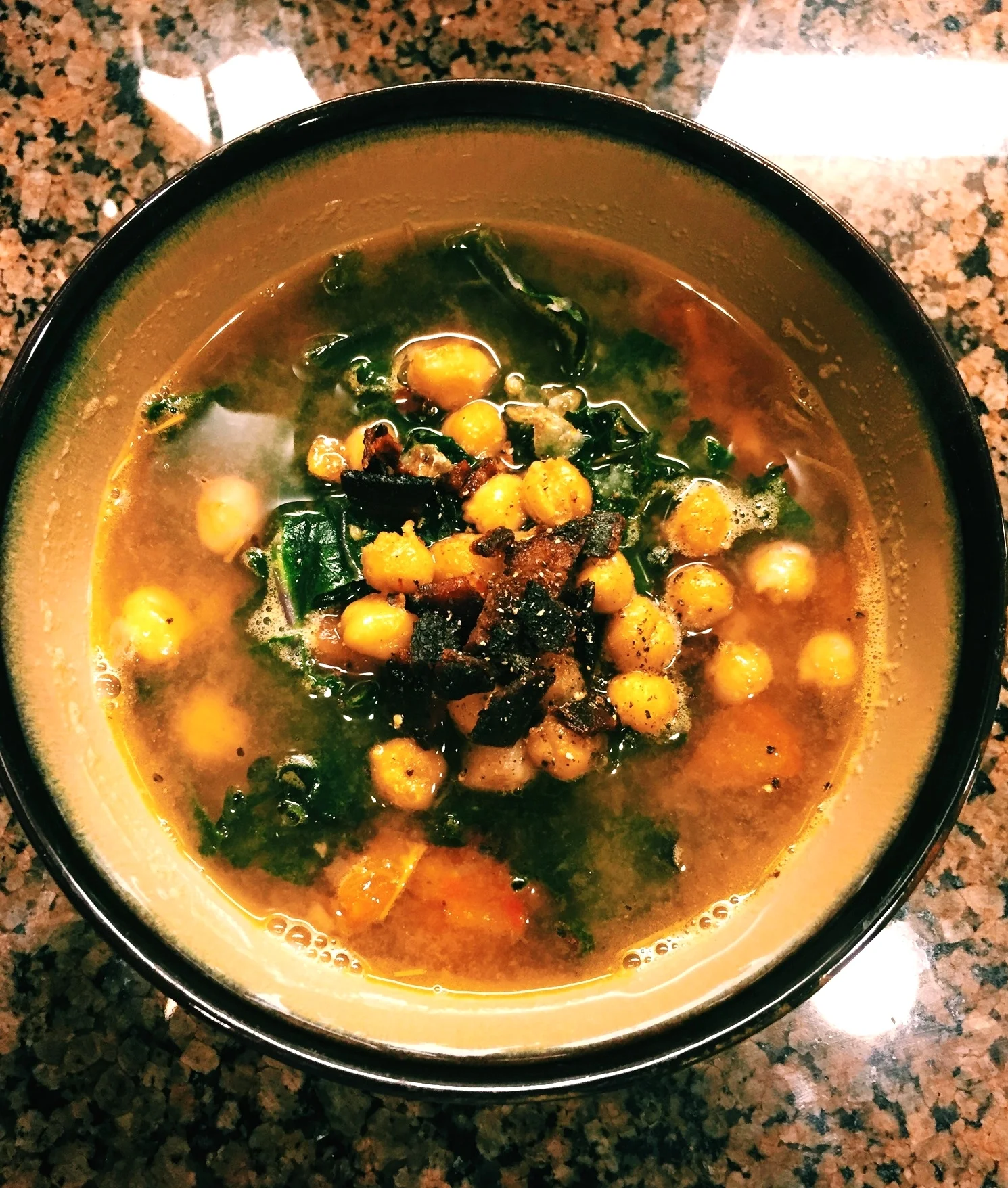 Dinner, soup, kale, chickpea, bacon